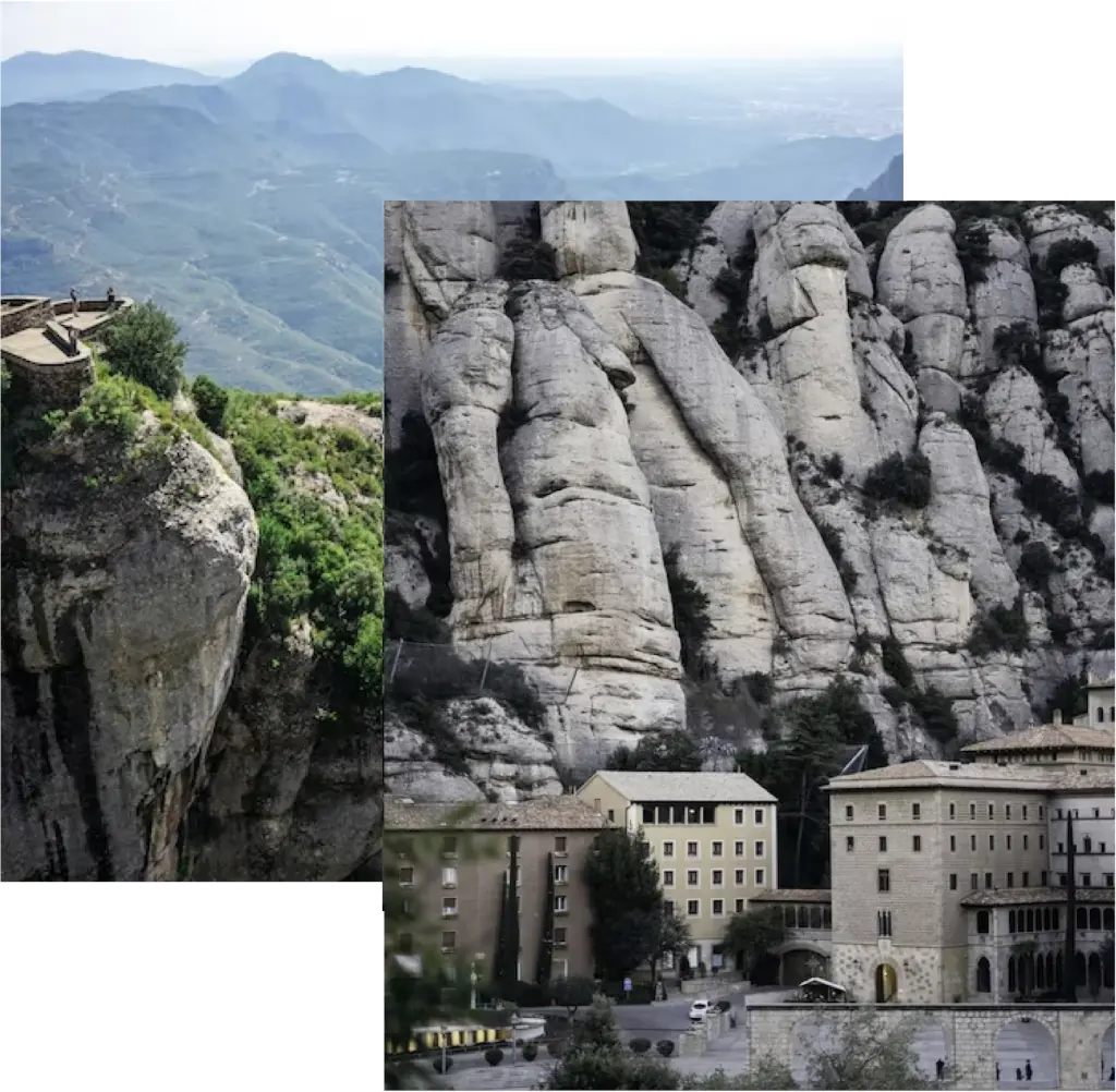Montserrat is perched on a striking rocky massif, renowned for its unique natural formations. The entire area is a protected natural park, preserving its extraordinary landscape. Home to the Benedictine monks, the Santa Maria de Montserrat Abbey was founded in the 11th century and later rebuilt between the 19th and 20th centuries. Today, it remains an active monastery with over 70 monks.
